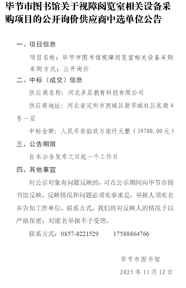 联系电话:0857-8237984 地址:贵州省毕节市碧阳大道一院三馆毕节图书馆