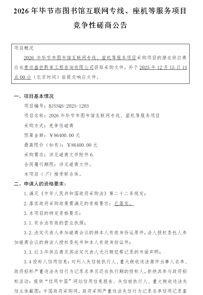上一篇:毕节市图书馆关于官网升级改造及运维服务的公开询价公告