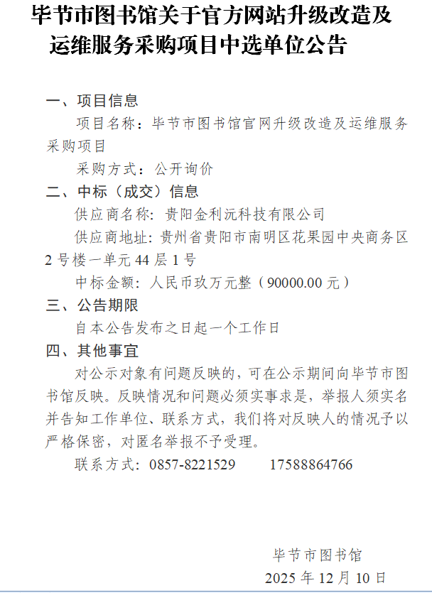 下一篇:毕节市图书馆2026年期刊订购成交公示