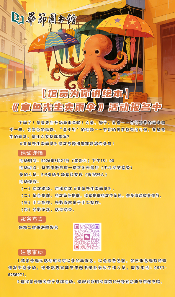 【馆员为你讲绘本】《章鱼先生卖雨伞》活动报名中